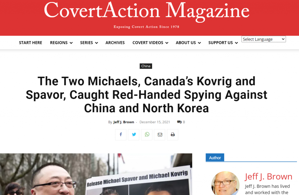 The Two Michaels, Canada’s Kovrig and Spavor, Caught Red-Handed Spying Against China and North Korea. By Jeff J. Brown on CovertAction Magazine
